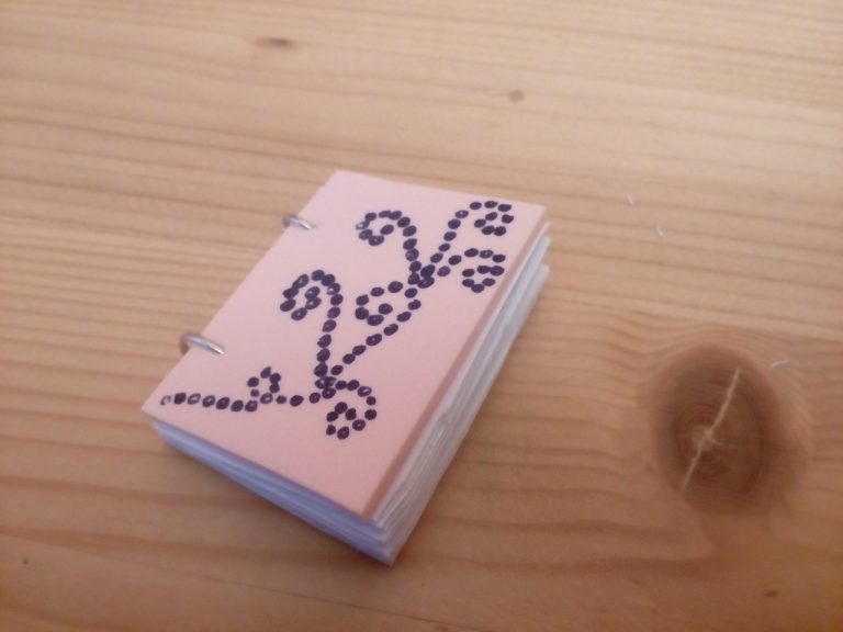 - Když máme navlečené všechny listy i obal deníčku, kroužky zavřeme.